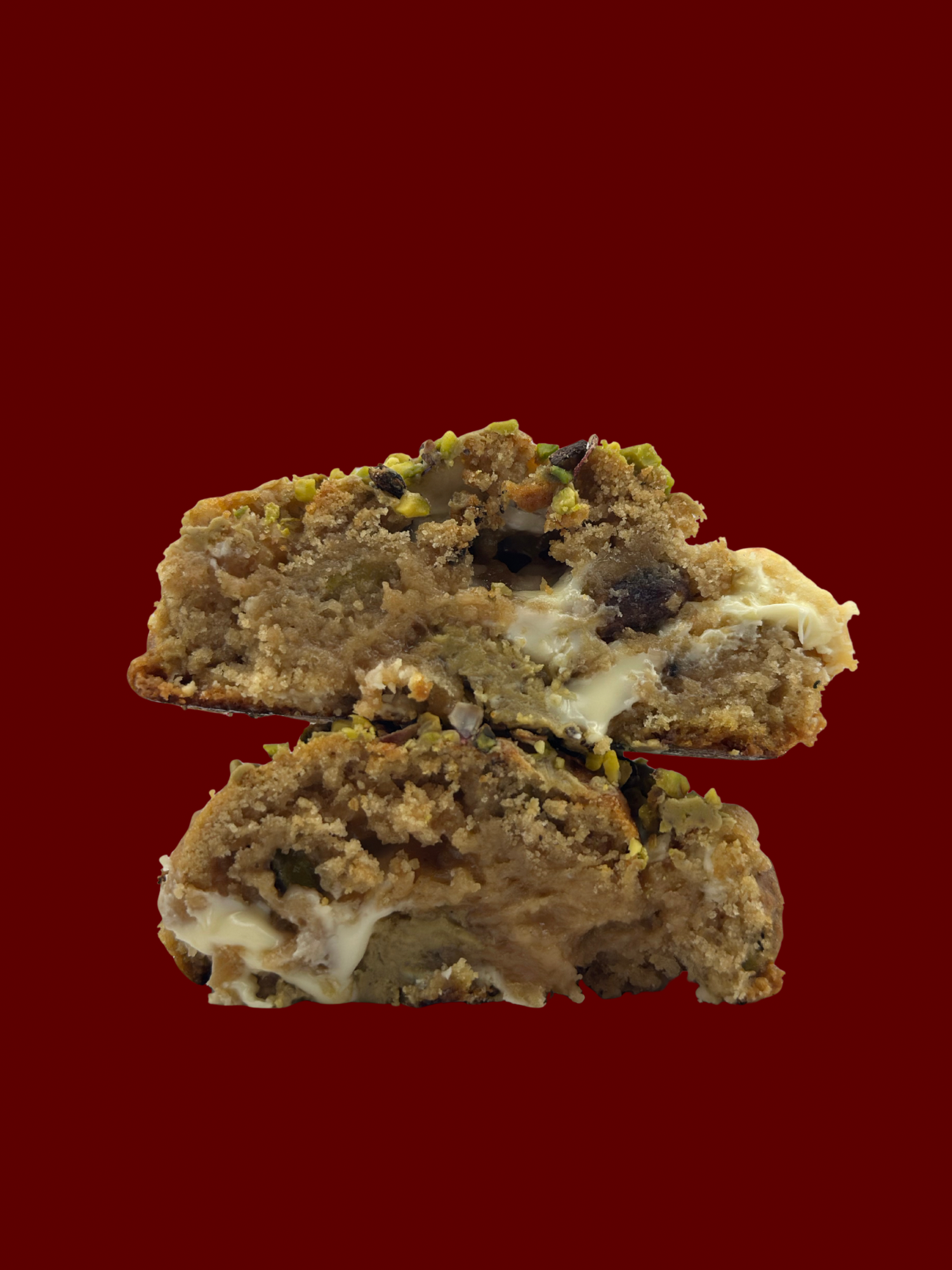 UN MORSO E SEI TRAVOLTO DAL DESIDERIO: IMPASTO PIENO DI PISTACCHI, GOCCE DI CIOCCOLATO BIANCO, CUORE CREMOSO AL PISTACCHIO E GRANELLA CROCCANTE SOPRA. UNA TENTAZIONE DA CUI NON PUOI SCAPPARE.